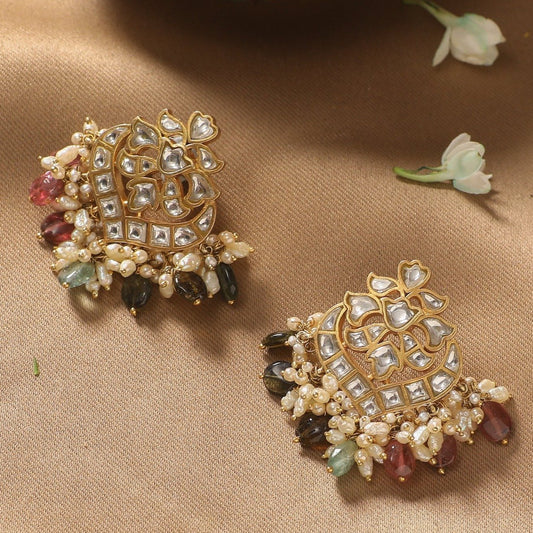 Noor Gold plated Pearl Chain Moissanite And CZ Silver Jhumka