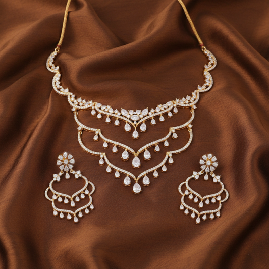 Lakshmi Cascade CZ Silver Necklace Set