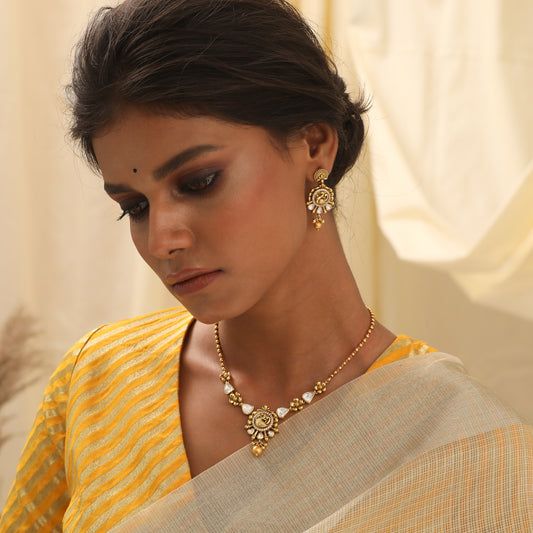 Regular price Rs. 32,669Regular priceUnit price / perSale price Rs. 32,669Antique GoldEOSS 25Mozo AntiqueNecklacesShort NecklaceVaralaxmiWhite -