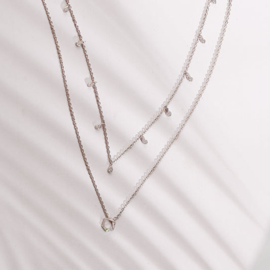 Two Layer CZ Charm Dainty Silver Necklace