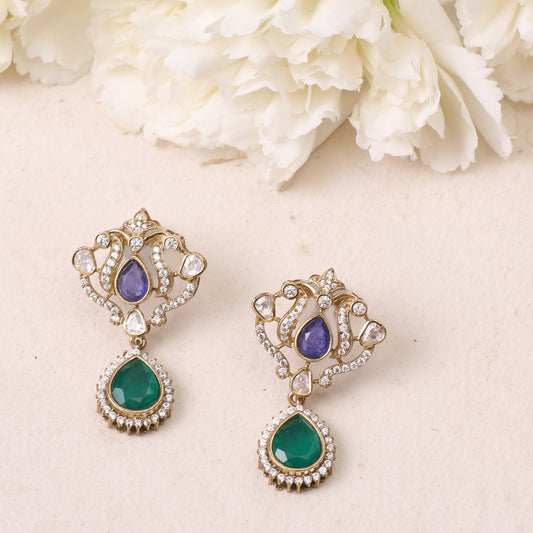 Ruhaan Moissanite and Gemstone Silver Drop Earrings