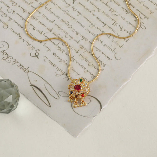 Regular price Rs. 10,889Regular priceUnit price / perSale price Rs. 10,889Badge1:NewBadge3:Ready To ShipEOSS 25NavaratnanewPendantTeejhVaralaxmiYellow Gold -