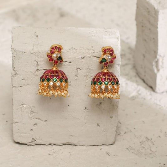 Pekham Kempu Jadau Silver Jhumka Earrings
