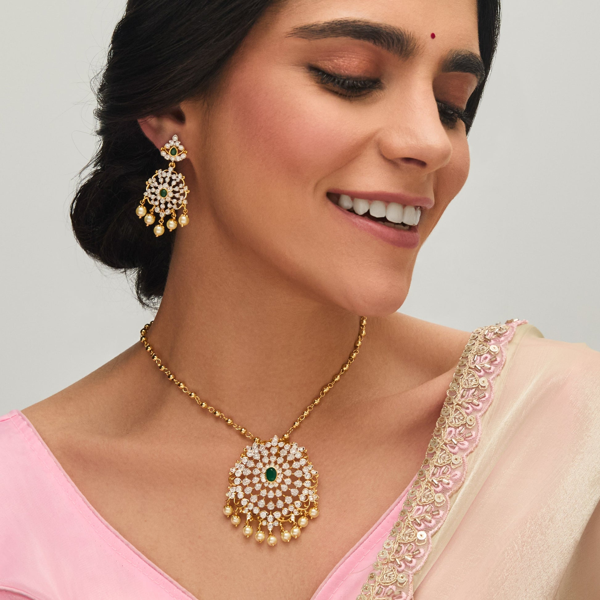 Experience the enchantment of the Emilia CZ Silver Pendant Set, adorned with sparkling CZ stones & delicate floral motifs grace the pendant. The drop freshwater pearls captivate the pendant effortlessly combining sophistication and charm.